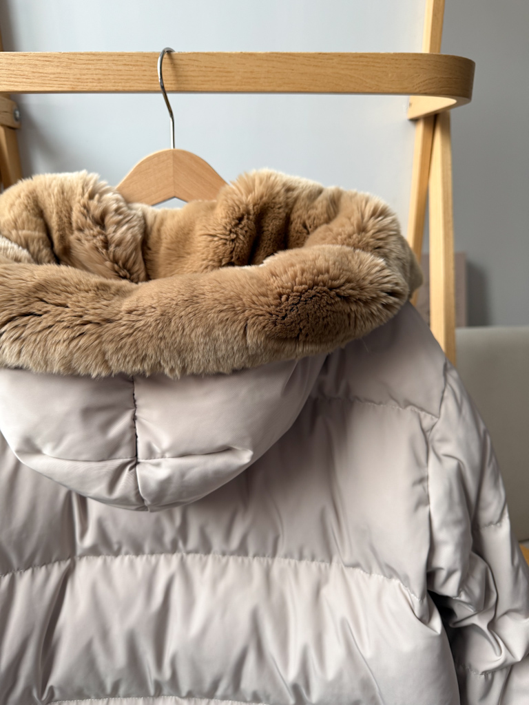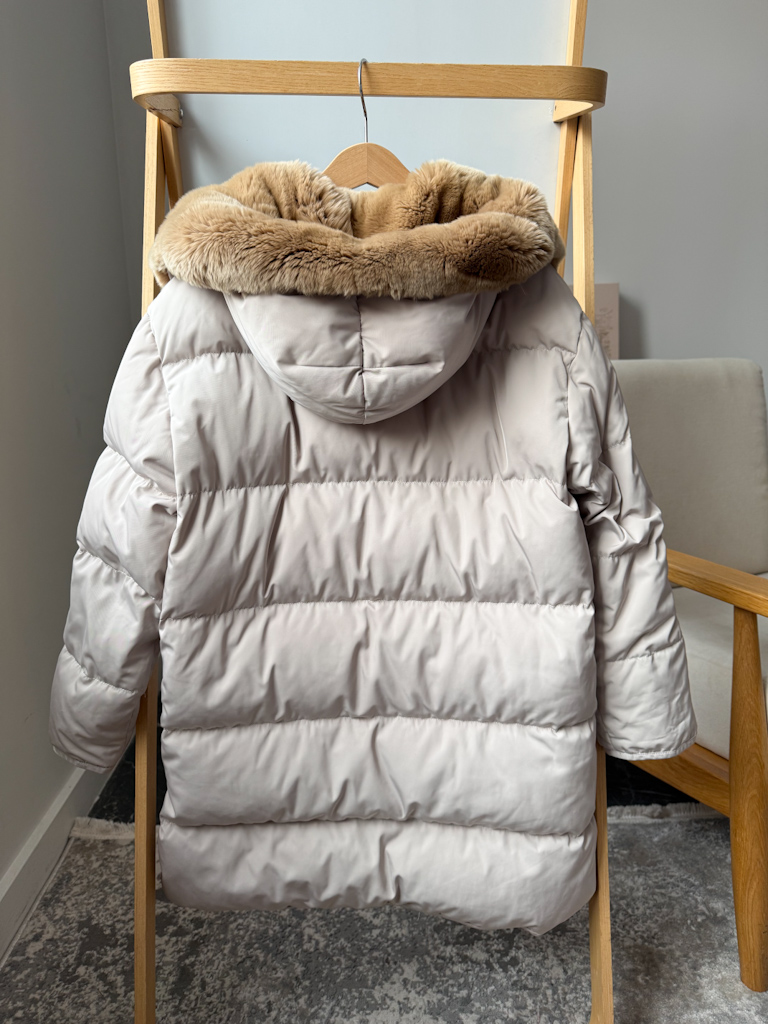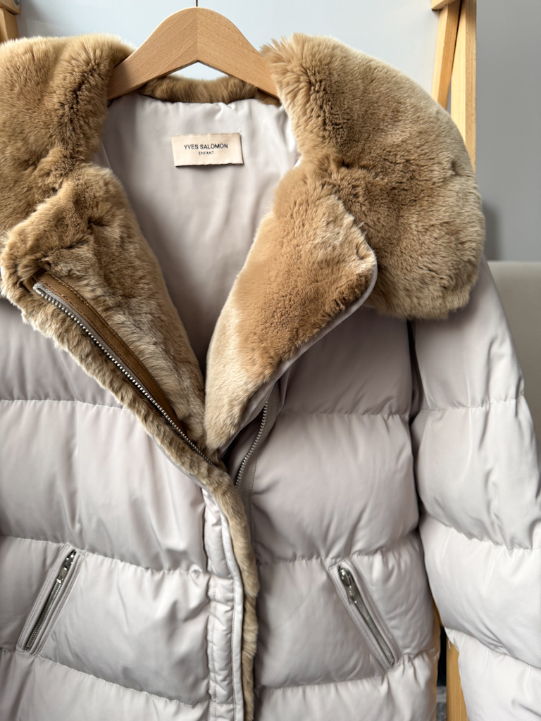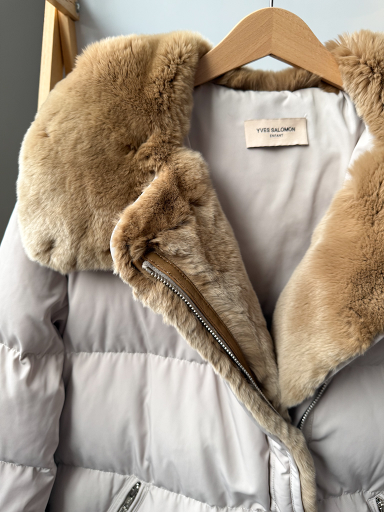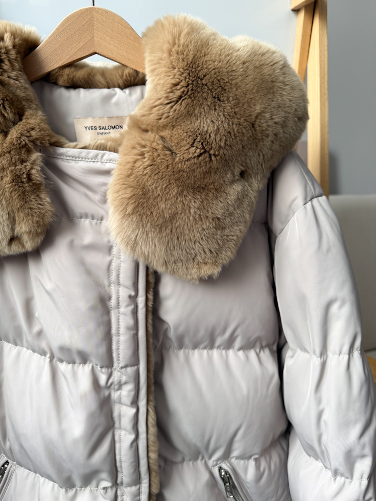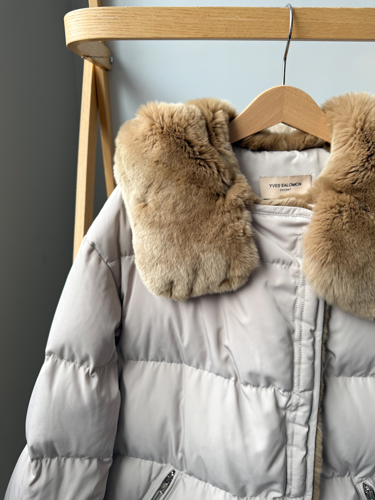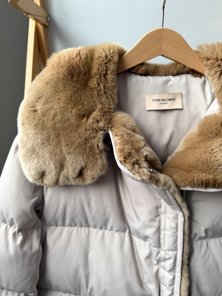Пуховая куртка Yves Salomon с натуральным мехом кролика в идеальном состоянии